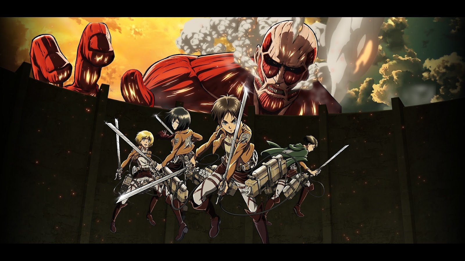 《進擊的巨人》故事主要是在描述在一個悠長的歷 史之中,人類曾一度因被巨人捕食而崩潰。幸存下來的人們建造了一面巨大的牆壁,防止了巨人的入侵。不過,作為「和平」的代價,人類失去了到牆壁的外面去這 一「自由」……主人公艾連對還沒見過的外面的世界抱有興趣。在他正做著到牆壁的外面去這個夢的時候,毀壞牆壁的大巨人出現了!