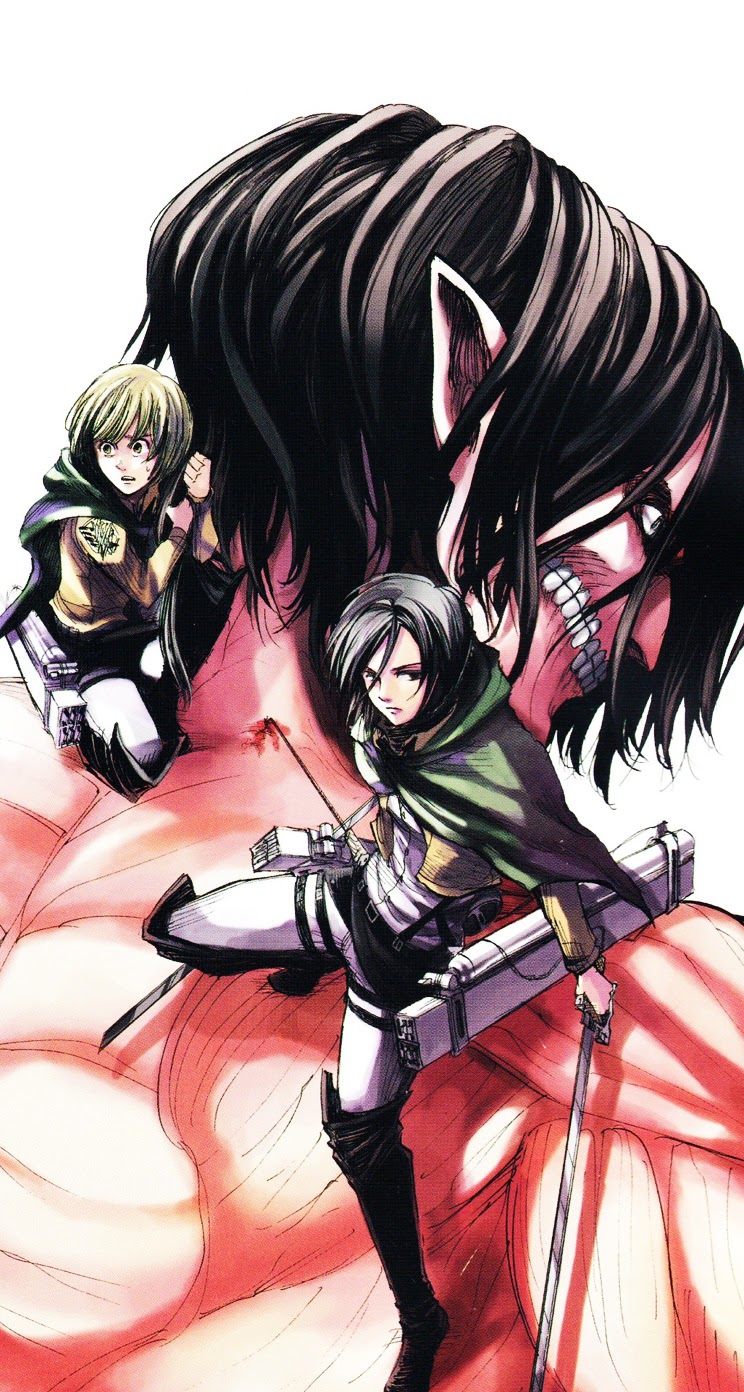 《進擊的巨人》故事主要是在描述在一個悠長的歷 史之中,人類曾一度因被巨人捕食而崩潰。幸存下來的人們建造了一面巨大的牆壁,防止了巨人的入侵。不過,作為「和平」的代價,人類失去了到牆壁的外面去這 一「自由」……主人公艾連對還沒見過的外面的世界抱有興趣。在他正做著到牆壁的外面去這個夢的時候,毀壞牆壁的大巨人出現了!